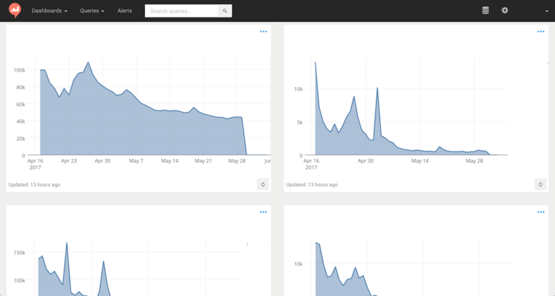 そのため、BIツールであるre:dashを導入し、次のアクションのために積極的にデータを解析できるようにしました。 re:dash上ではアプリケーションデータベースやAthenaなど複数のデータソースから得られる情報を横断的に、かつインタラクティブに掘り下げて見ていくことができ、Pawooの方針を決定するマネージャなどが日々活用しています。